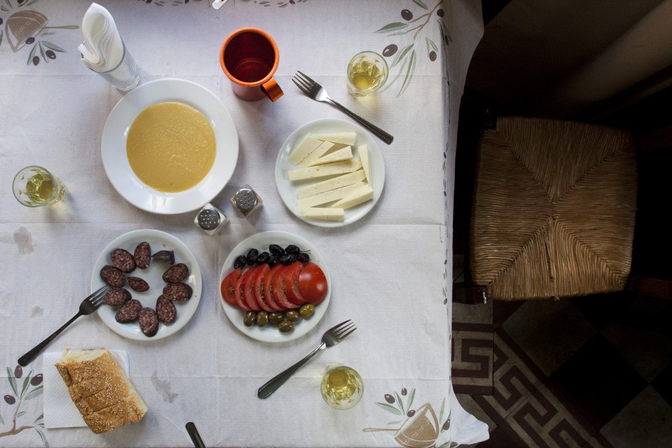 Η κυρά-Βούλα – γυναίκα του κυρ-Αποστόλη – μαγειρεύει στην κουζίνα και το μενού εδώ και χρόνια το ίδιο.
