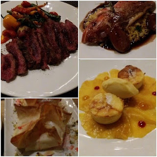 Στο menu υπάρχουν και τέσσερις επιλογές κρεατικών.. η μοσχαρίσια ταλιάτα με baby λαχανικά και μαρμελάδα από τοματάκια Σαντορίνης, ήρθε ψημένη rare, το ψήσιμο των λαχανικών ήταν ιδανικό και ο συνδυασμός με τη μαρμελάδα πολύ πετυχημένος.