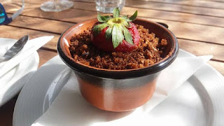 Για επιδόρπιο, μας κέρασαν μια εξαιρετική φρουτοσαλάτα με τριμμένο cake από πάνω.