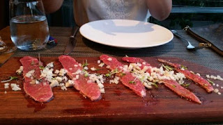 Η ωδή στην κρεατοφαγία με καρπάτσιο και ταρτάρ από διάφορες ράτσες, sashimi wagyu, outside skirt από αμερικάνικο black angus, λουκάνικα με τρούφα και bolognese με εξαιρετικό κιμά από διαφορετικά είδη κρέατος κομμένο με μαχαίρια!