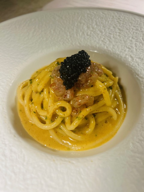 Ένα πιάτο έπος, από τις καλύτερες μακαρονάδες με θαλασσινά που έχω να θυμάμαι που φτιάχνεται με spaghettOne από Gragnano! Το αυθεντικό ιταλικό σπαγγέτι που αγαπούν οι chef! Το al dente ζυμαρικό συνδυάστηκε με αχινό και ωμό Λινδιακό γαριδάκι και το σέρβιραν με χαβιάρι ρέγγας.